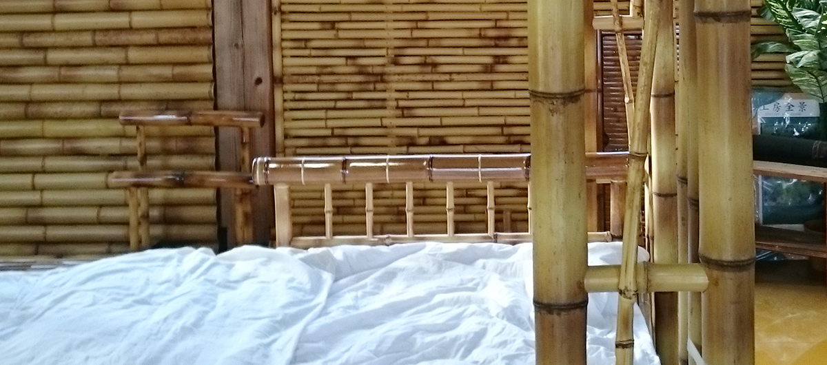 海外のホテルのコンペティションに出品するため、製作中の天蓋付竹のベット。